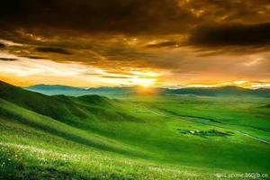 广袤的草原上的日出的俊美与夕阳的婉约