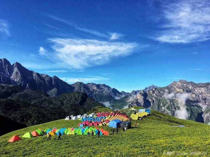 从成都出发,经都汶高速到南新镇,中午用餐后坐中转车车至立立爬,然后徒步至营地,徒步时间约2-3小时,途中边走边欣赏沿途风景,大约16::00 可到达晚上露营营地,海拔:3800米),安排住宿,就餐(山顶土火锅),餐后大家一起围着火堆(篝火歌庄),在漫天繁星下唱唱歌、玩玩游戏、喝喝小酒。