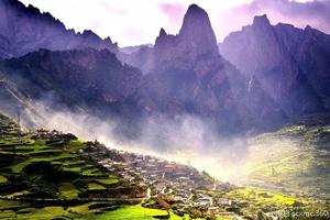 「日出」扎尕那的日出是不容错失的壮美景色,缕缕晨阳透过薄雾和山,分外的壮美和震撼。计划观赏日出的队员可结伴在领队的带领下集结前去观赏日出。
