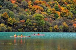 彩林欣赏线路:上白腊海-白腊飞瀑布-白石海-墨海-珍珠瀑布-五彩池+长海