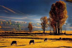 新都桥是因为秋天出名的饿,秋天新都桥的柏杨树变成金黄色,落叶缤纷,一片灿烂美景,绚丽极了。还有居民朝暮时的炊烟袅袅,更为新都桥增添了一份仙气与烟火气。