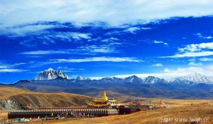 遥望不远处的雅拉神山,巍峨壮观,终年银装披挂,群云缭绕,与广袤的绿色草原和金碧辉煌的塔公寺相衬托,展示了一幅秀丽的高原风光。