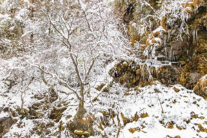 你可能难以想象,在初秋的时候,阿尔沟就成了白色的童话世界,而在这初冬之际,雪花飘飘,又给浪漫的彩林披上了一个雪白的衣裳,双重视觉冲击,活脱脱将阿尔沟装点成了避世仙境!