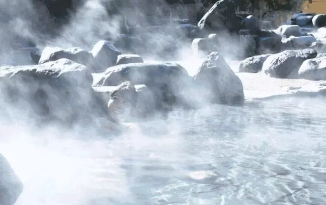 消除一身疲惫,在热气腾腾的温泉池里