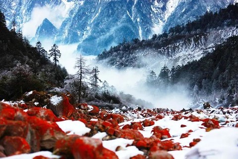 红石在茫茫白雪中丝毫不甘寂寞