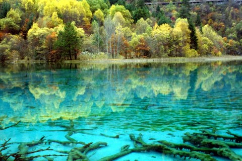 【九寨沟】被誉为人间仙境,童话世界,由翠海、叠瀑、彩林、烟云、雪峰以及奇异多彩的藏族 风情组成格调自然风韵独具的仙境。九寨沟的景观主要分布在树正沟、日则沟、则查洼沟三 条主沟内,景区内有最宽、最高、最雄伟,最娟秀的四大瀑布;珍珠滩瀑布、诺日朗瀑布、 熊猫海瀑布、及树正瀑布,108 个高山湖泊及数十处流泉飞瀑等景观。最美最奇特的是九寨沟的水,清冽透底,变幻无穷;在阳光的折射和反射下呈现五彩斑斓的色彩,让您细细体味“黄山归来不看山,九寨归来不看水”的意境.