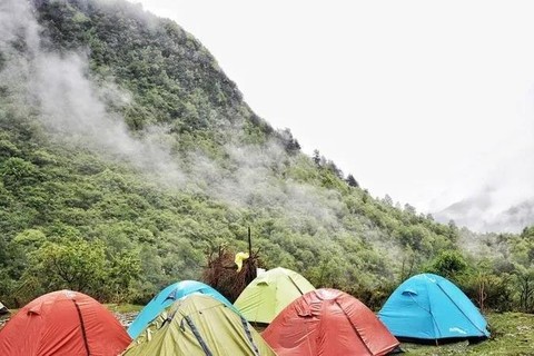 早上从成都出发,领队会带领小伙伴们相互认识并介绍行程以及注意事项。经成灌-都汶高速-薛孟路到孟屯河谷(绵虒服务区上厕所),吃午饭。乘坐中转车前往孟屯河谷露营地山脚,徒步20-30分钟左右到达高桥沟露营基地,分配帐篷及搭建营地后,跟随领队前往高桥沟瀑布游玩,指定时间晚餐,餐后篝火晚会,队友可AA烤鸡烤兔啤酒,尽情嗨皮。
