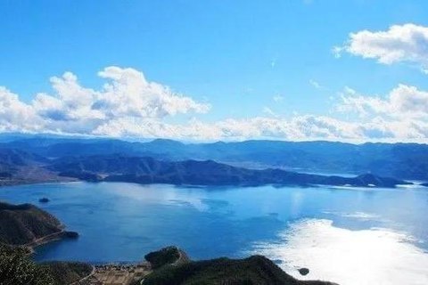 坐缆车上山,能看到开阔的泸沽湖全景。