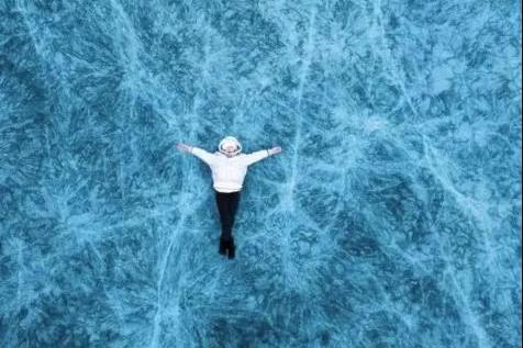 一到冬天,笔架山下的红海子便开始结冰,蓝冰逐渐变厚,在阳光下,冰面下些许破裂,呈现出好看的花纹。