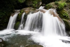 森林公园山高林密,千峰叠翠,万水漂流,飞瀑流泉众多,可谓灵动之水、欢笑之泉、奔腾之瀑,并由此组成了山水林泉的优美图画,算得上是景区一大奇特景观,其中,五彩瀑、大飞水、小飞水、高飞水最为有名,而号称“西部神泉”的大飞水,当属雪山飞瀑流泉第一。