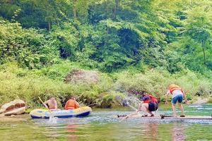 景区老板开发了竹筏、气垫船,特别适合情侣、亲子家庭、单身青年组团一起游玩。