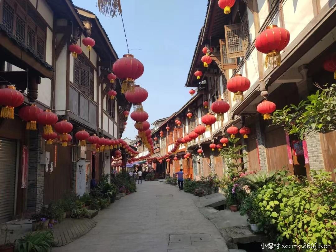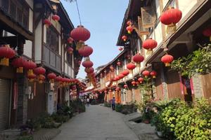 一条小溪横穿古镇,溪水清冽,缓缓地从小镇屋前流过,演绎出古镇的从容与自得。这里拥有成都古镇中最长的一条古街。长长弯弯的街道,民居鳞次栉比,每一个院门里面都有不同故事。
