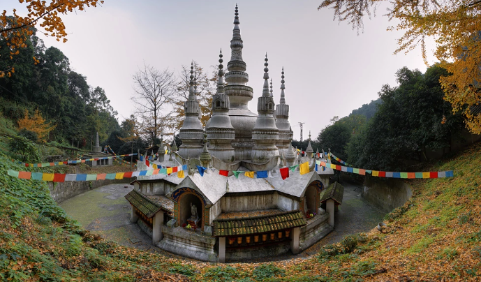 离元通古镇十多公里,就是著名的白岩寺,独特的藏地风格,有常见的转经筒;还有极为精致的印度佛塔,那可算得上建筑美学上的宝贵财富。