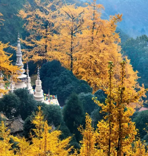 白岩寺有很多参天古银杏,多由明朝的僧人所种,每到秋天的时候,观看银杏树的游客络绎不绝,在国庆期间,杏叶正是由绿变黄的时候,还有一株的历史季金色的树叶飞舞,煞是好看。