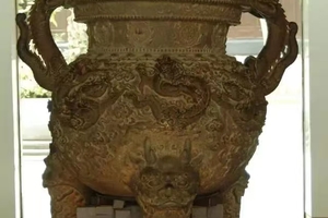 清咸丰年间,上皇观中掘得飞龙铁鼎,重达千斤,是唐公主遗物。此鼎腹面铸六龙盘绕,其中二龙翘首相望,似欲飞升,其他部位满饰云纹花卉。腿铸兽头,掌心握宝,造型精美大气,且埋于地下千年不蚀,可见唐代冶炼铸造技艺之精。