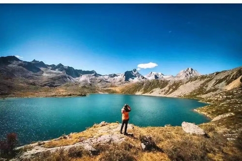早晨7:30起床,早餐后,开始欣赏党岭迷人的自然风光徒步,中途可以在飞机坪稍作休息,这里是一片大的草原,牧民在这里设点可以喝奶子茶,吃方便面等,再经过1小时来到美丽的草海子. 草海子往上徒步约1小时就是美丽的葫芦海。葫芦海有很多美丽的传说..... 葫芦海是状似葫芦的湖泊,由一大一小的两个湖泊组成。当地称其为葫芦海。欣赏完毕沿途下撤。返回党岭村,乘坐中转车返回丹巴县城入住酒店标间。