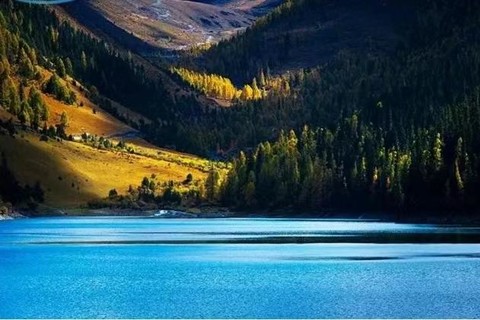 这里常年可见云雾映日的奇观,湖水常年碧绿如墨、水平如镜,远处是连绵起伏的高山草甸。蓝天、白云、高山、草甸、森林、湖泊、藏寨、经幡、牦牛、马羊……这里总是一幅幅人间仙境的绝美画卷。