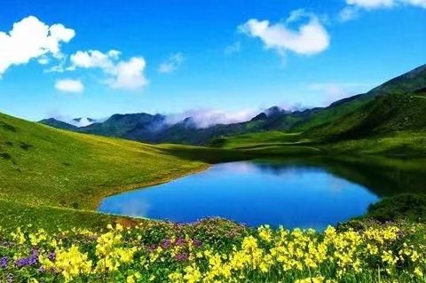 早上起床观看初升太阳,听早起的鸟叫,然后轻装上阵,徒步沿途摄影观花!今天的徒步线路为:鸡草棚--黑龙池--白龙池--青龙坪--水煮金沙--南新镇。途径地黑龙池周围植被茂盛,池水清澈,呈绿油油的颜色,水中色彩纷呈,青绿相间,池中的进水和出水相隔数尺,冬消夏涨。白龙池池的四周为草甸、草坡和茂盛植被。牛羊活跃其间,非常的漂亮,是各摄友理想的摄影景点。 预计到达成都时间为20:00。结束美丽的九顶山之行。