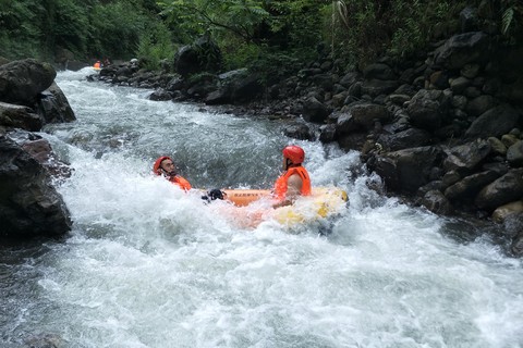 峡谷漂流全场4公里,上游是浪花飞溅,下游是360度大回环+45度急转弯,漂流过程会有弹跳、摇摆、起落的体验,感受浪尖上心跳。