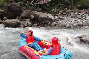 西邻峡谷是四川第一家高山峡谷水上娱乐基地,一线水准漂流场地,这里森林覆盖率达99%,茂密如林,漂流两岸青山耸翠,云雾飘渺。