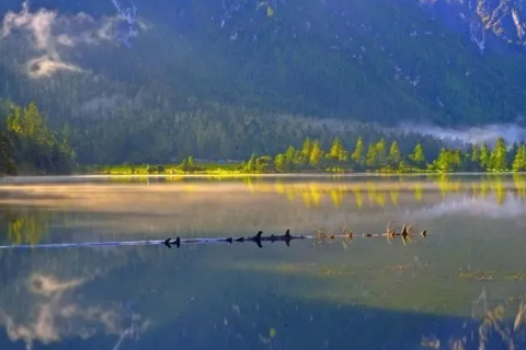 早上早餐后乘车前往沙德乡,大概一个多小时车程,到达客栈,看情况是否先安排入住。 然后乘坐中转车前往莲花湖,这里有绝美的原始森林、以及高山海子,湿地上牛马静静的吃着草,在阳光的照耀下,宛如一幅美丽的画卷。月亮湾小伙伴可以尽情的享受这里独有的美,随后跟着领队前往荷花海,路上还有野温泉可以泡哦。