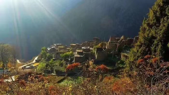 整个寨子由上寨、小寨、下寨合而为一,构筑在大山深处的一片开阔斜坡上,大部分建筑都是石头为主的原始建筑模式,寨子里还能看到一些过去的古碉楼建筑。