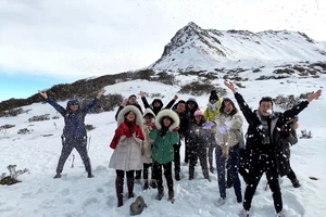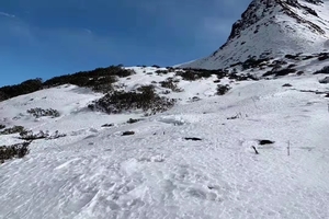 体力超好者登上垭口,景色极为美丽,白云如海雪山连绵,休闲徒步者,可以停下来耍雪和滑雪,积雪超级松软,非常适合打雪仗堆雪人。