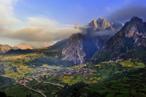 早餐后大家结伴或自由行进入峡谷游玩;一线天、高山草甸、仙女滩、森林、白石圣山等,或者喜欢村寨的朋友可自由行村寨拍摄人文建筑等。预计午餐后出发前往九曲黄河第一湾,穿越茫茫草原车程预计正值傍晚时分便可到达九曲黄河第一湾处,大家进入景区踏上高台观赏。当晚入住唐克或红原当地酒店。
