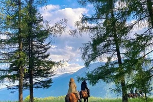 早餐后出发,行车约1小时抵达喀纳斯,今天在喀纳斯我们可以以半自助的形式游览。首先可以带领大家上观鱼亭游玩(门票不含,需要去的费用自理)。观鱼台位于喀纳斯湖西岸骆驼峰顶上,本为观“湖怪”而建,因此得名“观鱼台”。与湖面的600多米的高度差让这里成为俯瞰喀纳斯湖全景的最佳角度,不仅可将四分之三的湖面尽收眼底,还能观览湖周的层峦叠嶂、翠峰倒影。若举目北望,还能清楚地看到阿尔泰山的最高峰——友谊峰,还可以自行乘坐区间车(费用自理)前往白哈巴体验最原始的图瓦人生活,参观最边境的小村庄。晚上入住喀纳斯。在蛙叫虫鸣的氛围中,静静地欣赏夜空中最亮的星。