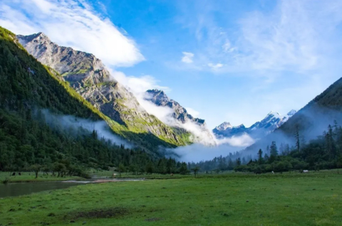 早上统一集合整装出发,乘观光车进入长坪沟(门票及观光车已含),抵达喇嘛寺后,就开始我们为期三天的徒步穿越行程,长坪沟全长29公里,面积约为100平方公里,峡谷长天、平缓悠长,四姑娘山就坐落在沟内16公里处。长坪沟景区内有古柏幽道、喇嘛寺、干海子及高数十米的飞瀑,并有奇石之景。夏天,山花与油菜花齐开;秋日,赤桦与红枫竞艳。历经沧桑的翠柏青松郁郁葱葱,飞瀑流泉在密林中哗哗作响,古代驿路在茫茫林海里穿梭延伸。当天晚上在四姑娘山幺妹峰脚下的木骡子营地露营。