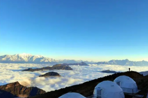 早上集合点准时出发,领队车上组织大家相互认识,一路高速直达泸定,预计11:30左右抵达泸定冷碛镇,在镇上AA午餐后前往牛背山景区长海子停车场。换乘景区观光车上山(行车时间约1.5h左右),抵达牛背山山顶。随后由景区酒店管家安排住宿,跟随领队拍摄雪山大片。晚餐可以去在牛背山的贡嘎雪山观景餐厅享用热气腾腾的牦牛肉汤锅(晚餐自理(可代订168元)。晚上入住牛背山三角帐篷20平米标间,带【24小时暖气】【带电热毯】,有露台,不带卫生间,卫生间为公用,有【热水供洗漱】,也很干净)。晚上银河升起,大家自行观星,躺在星空下,浪漫至极。(可升级住宿,报名可直接备注升级房型或联系客服)。