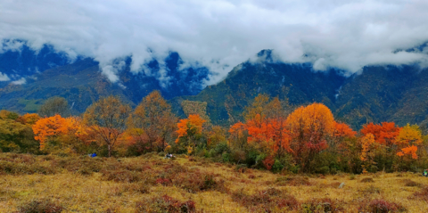 这里有金黄色一片的“卧龙大草原”云中牧场,这里可以360度观看彩林装扮的油画世界,这里有金黄色的松林,有云海翻腾的连绵山岭,还可以远眺美丽的雪山!