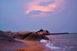 黄金的沙滩柔软而亲切,婆娑的树林清丽恬静,清澈的柔波坚韧而执著,千姿百态的礁石巍然屹立,古朴的渔村温馨而恬谈,灵动的海豚亲切的呼唤,还有那悠闲从容的渔民…