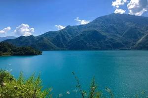 细雨过后,蓝天如洗,湖岸曲折幽深,重峦叠翠,天然氧吧,让人心旷神怡。无论是在这里骑行环湖,还是乘船泛舟湖上,都是逃离大城市远离喧嚣的好地方。