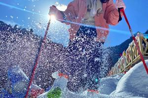 抬头即见雪山之巅,运动体验极其美好。景区戏雪区以瓢虫主题展现,并且是以闯关模式打造的戏雪乐园。