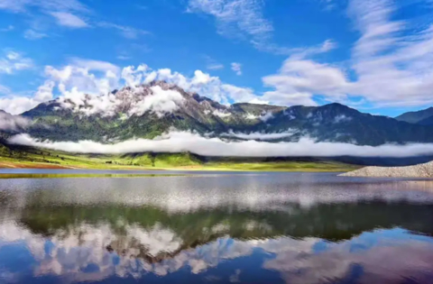 有雪山倒映,有大片草甸
