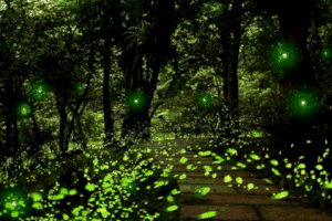 伴着流水潺潺而流,吱吱呀呀的虫鸣在耳边回响,像是一曲悠扬婉转的夜曲。萤火虫错落有致闪耀在山林之间,那声音忽高忽低,那亮光忽明忽暗,忽远忽近,演绎着它们的舞曲。