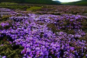 七里坝草原,是一片壮观的高山草甸,生长在这里的杜鹃花品种繁多,包括乔木和灌木。其中,乔木杜鹃以白色、绯红偏多,灌木杜鹃颜色主要为紫色及紫蓝等色。每年4一5月杜鹃花开季节,盛开的杜鹃花,一簇簇、一片片,红的像霞、白的像云;远处的游人沐浴着阳光,在草甸上,在花海里自由的嬉戏……天却是那么的近!