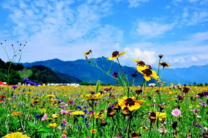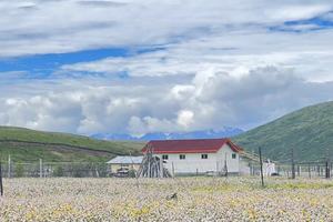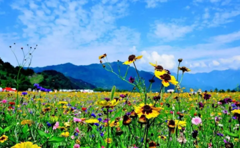 景区内各种颜色的小花,黄色的,紫色的,白色的,红色的……漫山遍野,一望无际。湛蓝的天空,高耸入云的雪峰,空旷的草原,浩瀚的花海,相互辉映、融为一体……让人心驰神往。最佳旅游时间:6-8月。