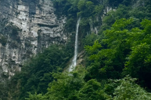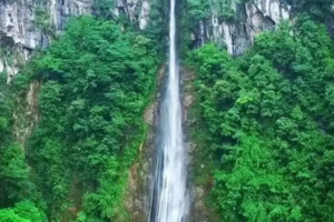 西岭雪山奇观,150米的小飞水瀑布,比黄果树的瀑布高两倍,在瀑布下驻足仰望观赏,飞流直下的壮观让人震撼,远处观望,犹如一幅流动的魅力山水画,拍一张合影,靓爆朋友圈,并且小飞水景区不要门票!