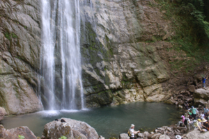 小飞水景区属于大邑县西岭风景区,但该景区不要门票,这里有丰富的水资源和独特的地理山形,自然形成了一幅令人叹为观止的瀑布,瀑布落差高达150米,是黄果树瀑布的两倍之多,清澈的溪水飞流而下,气势磅礴,瀑布声轰鸣,犹如大自然最宏伟的音乐。
