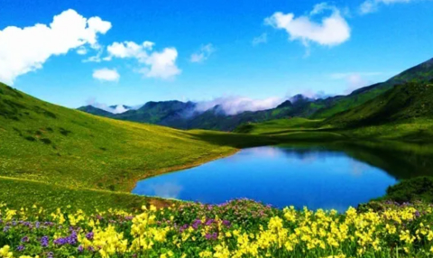 从五月到十月份,杜鹃花、报春花 、鸢尾花 、紫菀花 、翠雀花 、马先蒿 、绿绒蒿 、西藏杓兰 ……,不同海拔高度上的数不清种类的野花依次开放,就像一座绚丽多彩的天国花园 。