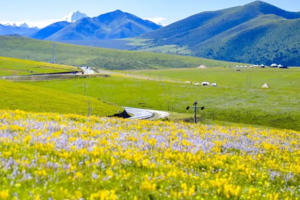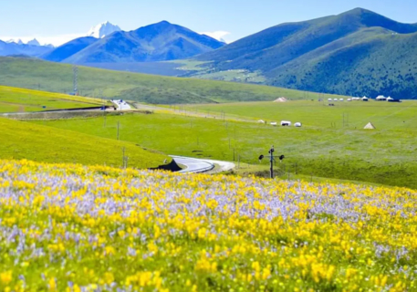 ✔川西超小众草原花海,远处雪山耸立,近处草原野花点缀,非常适合自由的躺着放空自己。