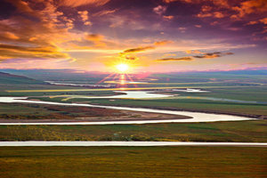 红原月亮湾草原生态旅游区,好似一位温婉秀丽的藏家女子,静静伫立在草原之上,是观光、摄影、生态休闲的旅游胜地。月亮湾近处绿草茵茵,远处山峦叠黛,“S”形的白河水蜿蜒流过。每当太阳东升,柔和的光芒洒向水面,如金龙起物;而夕阳西下时分,晚霞染红了天空,也映红了月亮湾,天水一色,壮丽无比。