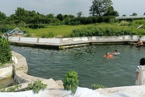 在彭州市龙盘村,有一汪天然的泉水,叫做龙泉,是天然的地下水汇流而成,当地的村民在附近修建了200亩左右的精品葡萄果园,所有的葡萄都是天然泉水灌溉。