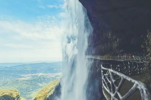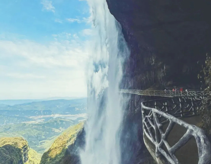 快来用脚步丈量瓦屋山,感受瓦屋山春夏交际的独特魅力,此洞是断崖形成的天然石岩洞穴,兰溪瀑布穿洞而过,飞流直下如水帘,宛若硕大的白色纱帘摇曳于崖洞,“壁咚”声响彻峡谷。冬季凝结成蔚蓝剔透的巨型冰瀑,形成天然的冰封洞穴。