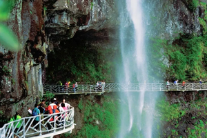 快来用脚步丈量瓦屋山,感受瓦屋山春夏交际的独特魅力,此洞是断崖形成的天然石岩洞穴,兰溪瀑布穿洞而过,飞流直下如水帘,宛若硕大的白色纱帘摇曳于崖洞,“壁咚”声响彻峡谷。冬季凝结成蔚蓝剔透的巨型冰瀑,形成天然的冰封洞穴。