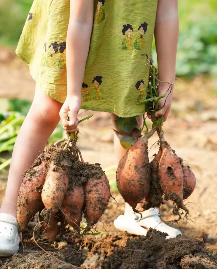 在农场,我们可以现场靠红薯吃,又香又甜!红薯富含蛋白质、淀粉、果胶、纤维素、氨基酸、维生素及多种矿物质,具有通便排毒、辅助降压、保护心血管、美容养颜的功效。