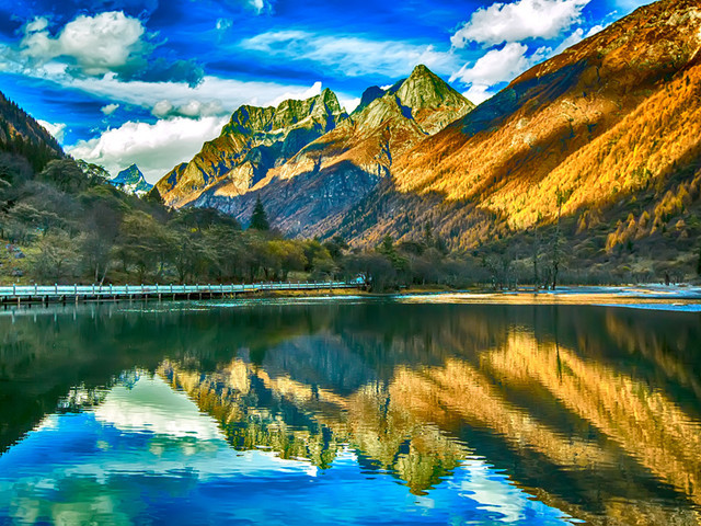 早上指定集合点集合准时出发前往日隆镇(四姑娘山),到达日隆后午餐,午餐后进入双桥沟景区,坐观光车沿途下车游玩,天色渐晚,日落下的双桥沟在光影中更是秋色迷离,景区开阔平坦、景点集中,全程通车。景区虽已开发,但环境维护的出于意料的好,景区内各种服务包括指示也十分清晰明了,大家可以更加舒适、方便的游览整个景区。由于整条沟海拔落差达到一千多米,所以地貌比较丰富,风景也完全值得期待。