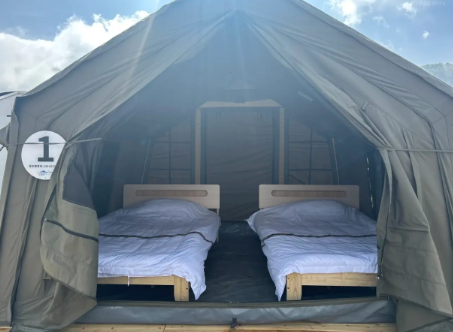 2、住宿:星空营地帐篷(包含睡袋、气垫、防潮垫、露营灯、枕头,2个人/帐篷;
